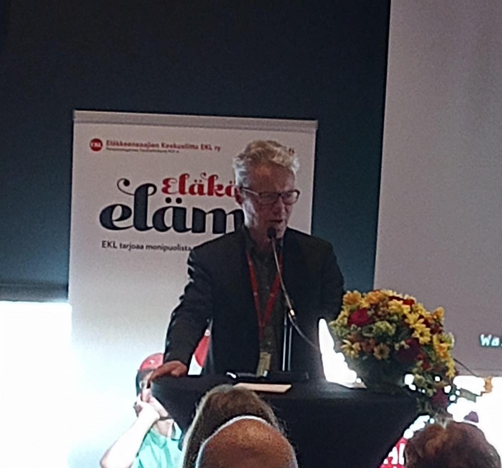 Terveisiä liittokokouksessa Joensuusta . Tässä liittomme uusi hallituksen puheenjohtaja Ilkka Kantola.